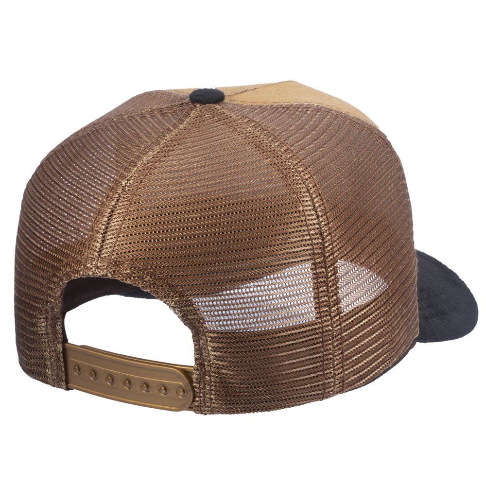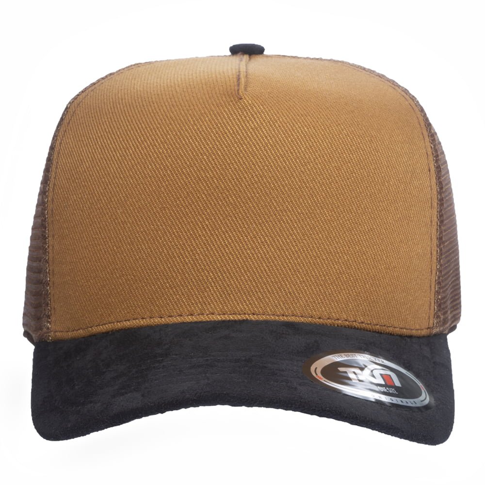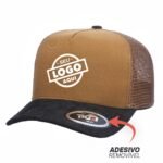Boné modelo Trucker, confeccionado em tecido Sarja 100% Poliéster e frente dublada com entretela de memória.