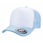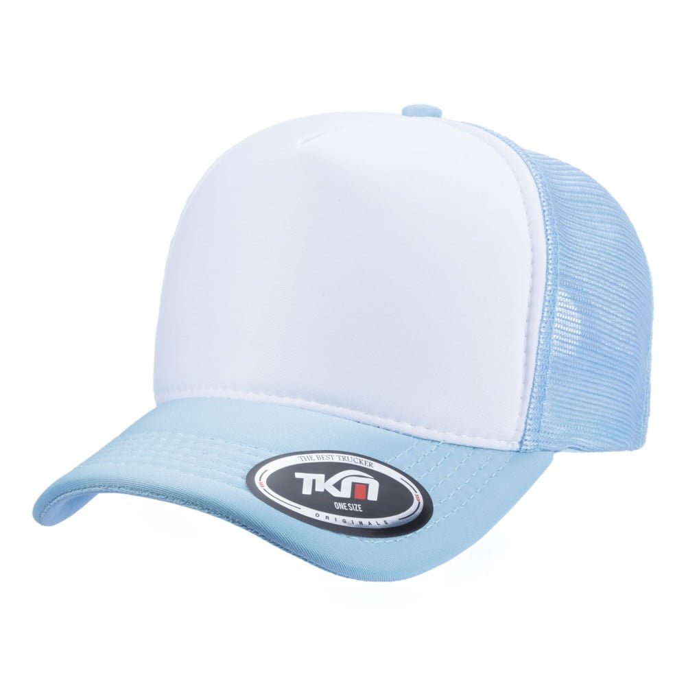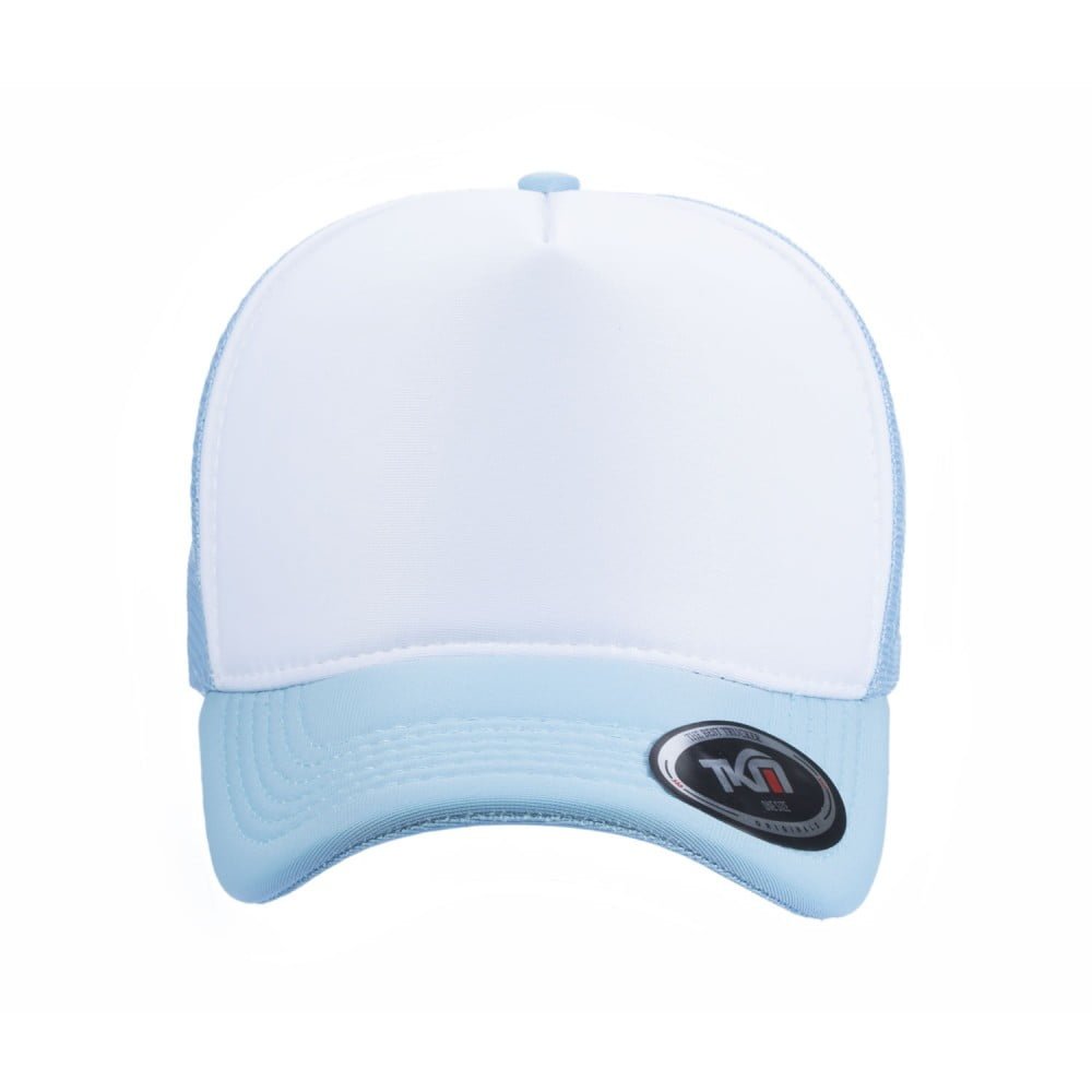 Boné modelo trucker liso, com frente e aba em tecido 100% Poliéster dublado com espuma de alta densidade.