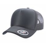 Boné modelo trucker liso, com frente e aba em tecido 100% Poliéster dublado com espuma de alta densidade.