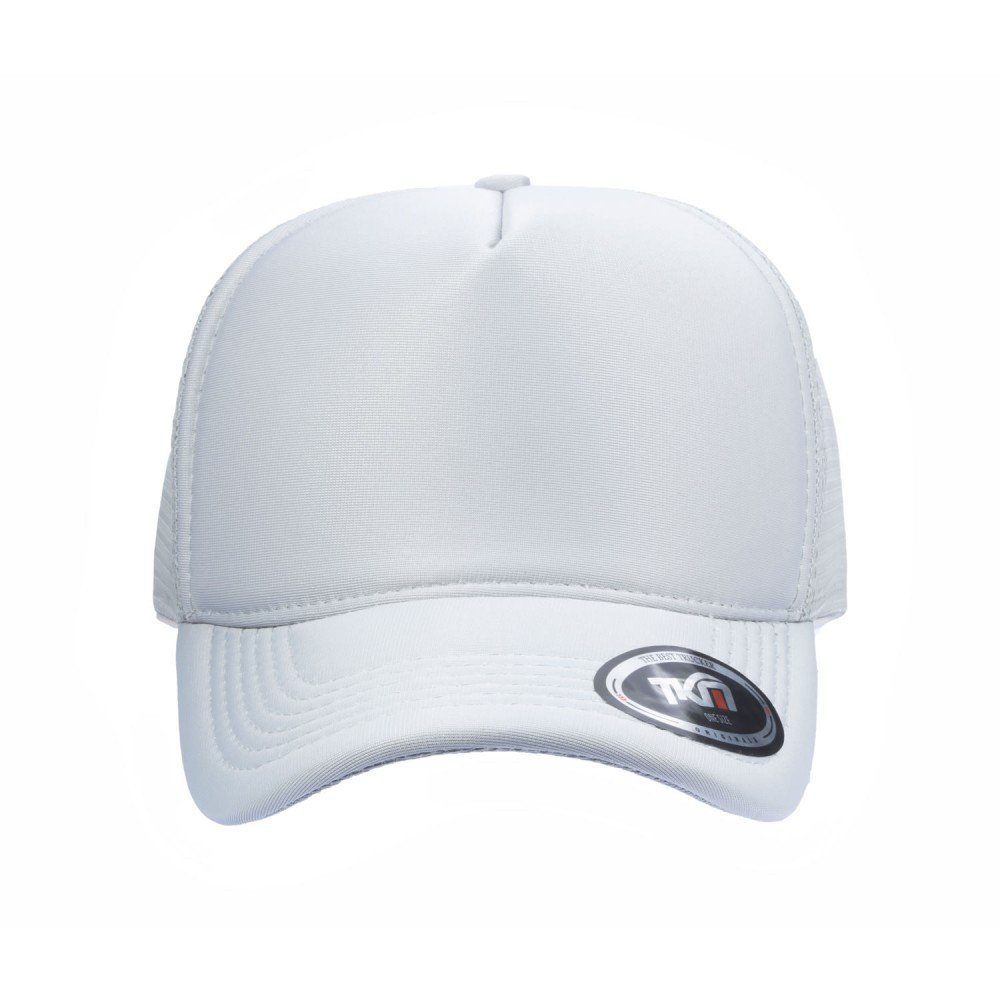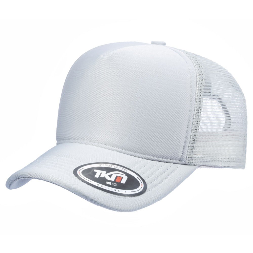 Boné modelo trucker liso, com frente e aba em tecido 100% Poliéster dublado com espuma de alta densidade.