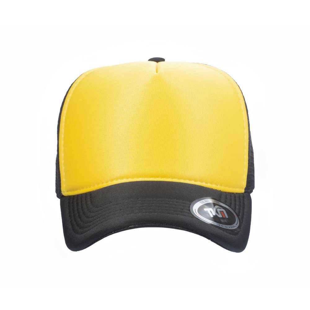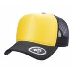 Boné modelo trucker liso, com frente e aba em tecido 100% Poliéster dublado com espuma de alta densidade.