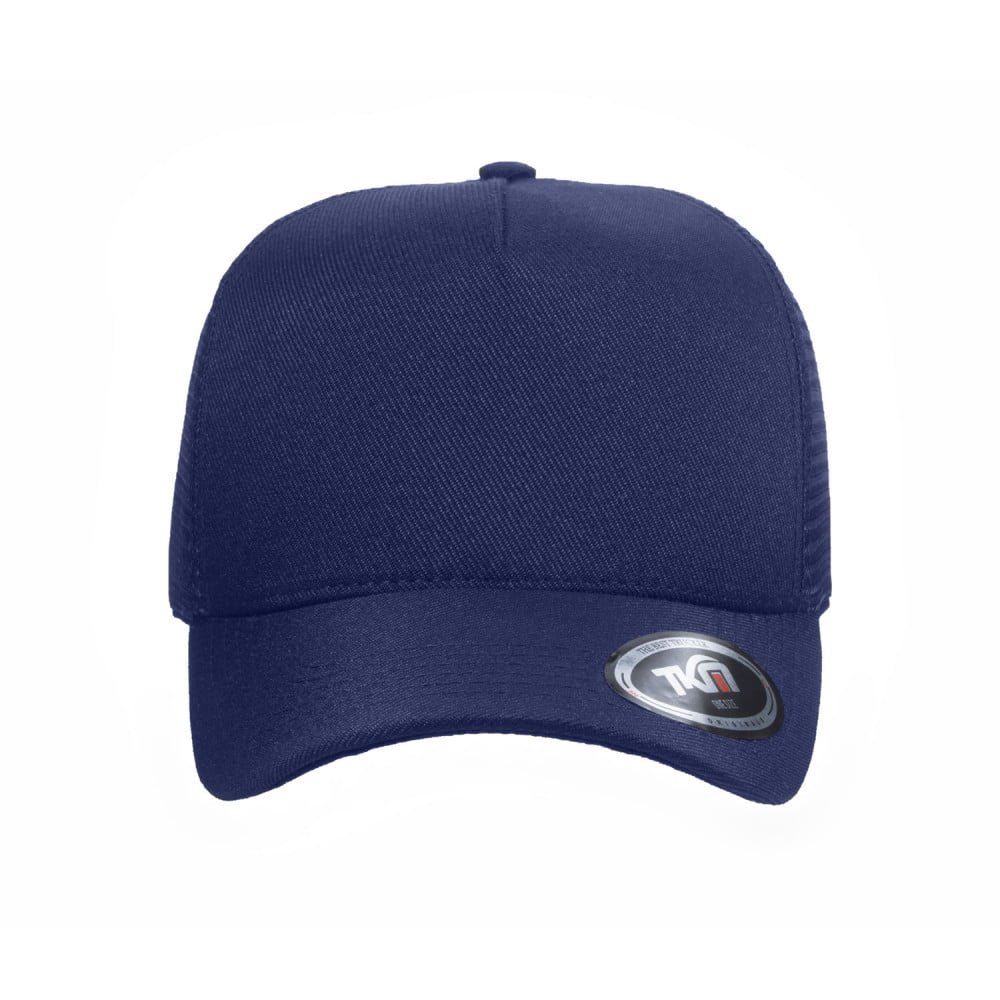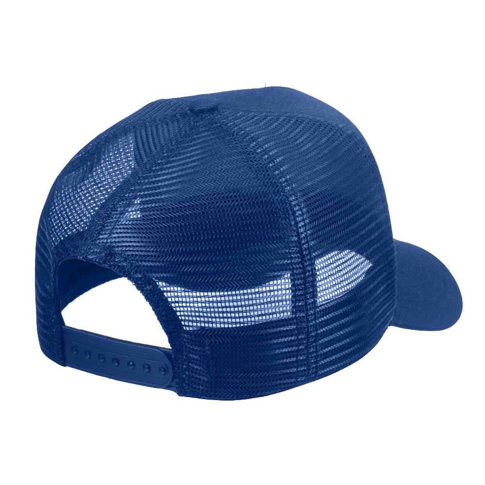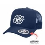 Boné modelo Trucker, confeccionado em tecido Sarja 100% Poliéster e frente dublada com entretela de memória.